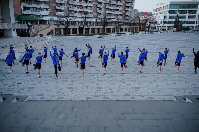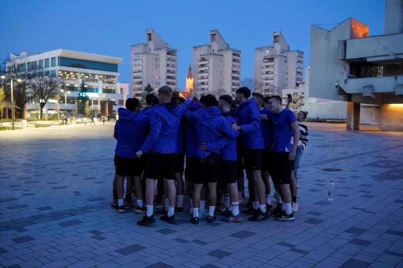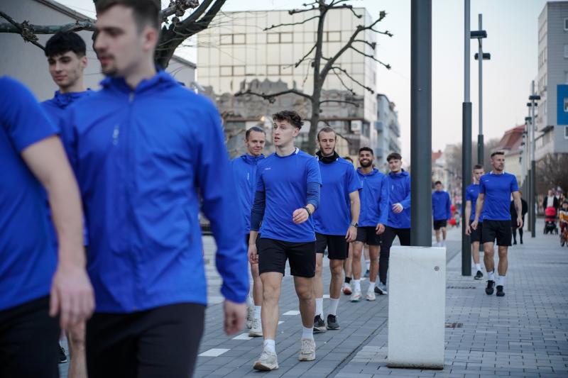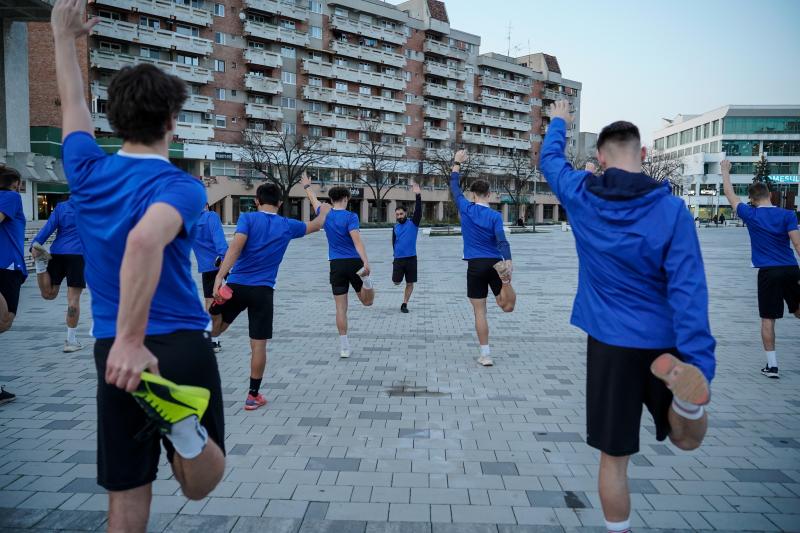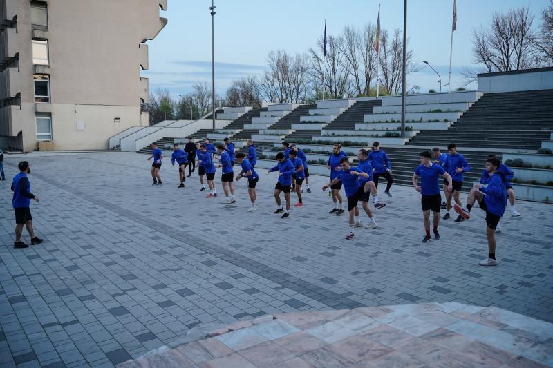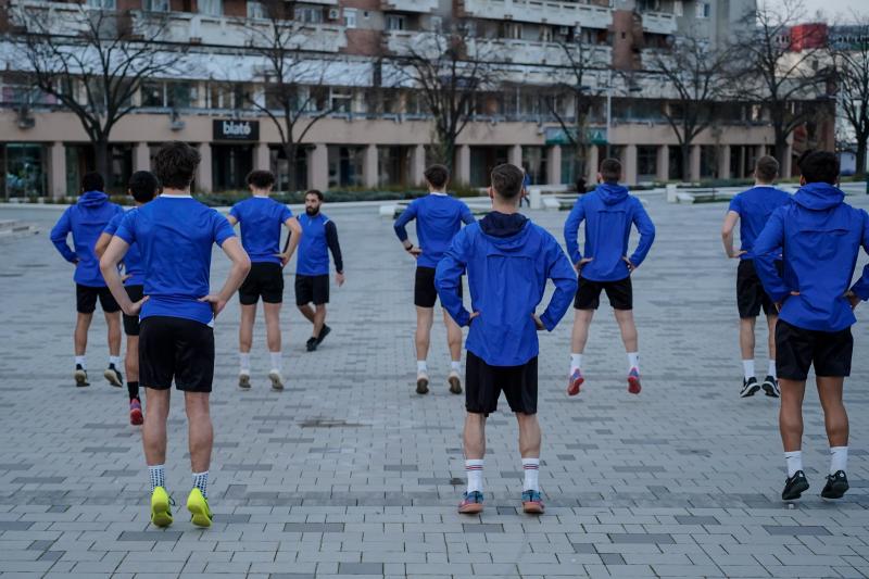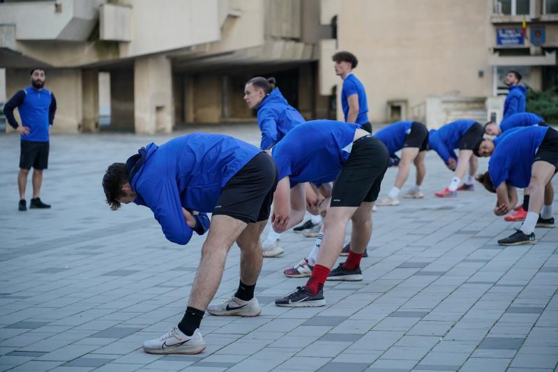 [FOTO] Antrenament inedit susținut de galben-albaștri seara trecută în inima orașului