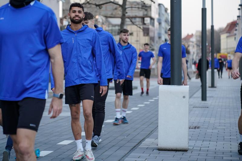 Jucătorii noștri și-au arătat abilitățile fizice în fața tuturor trecătorilor într-un antrenament “deschis publicului”, care s-a desfășurat în centrul orașului.