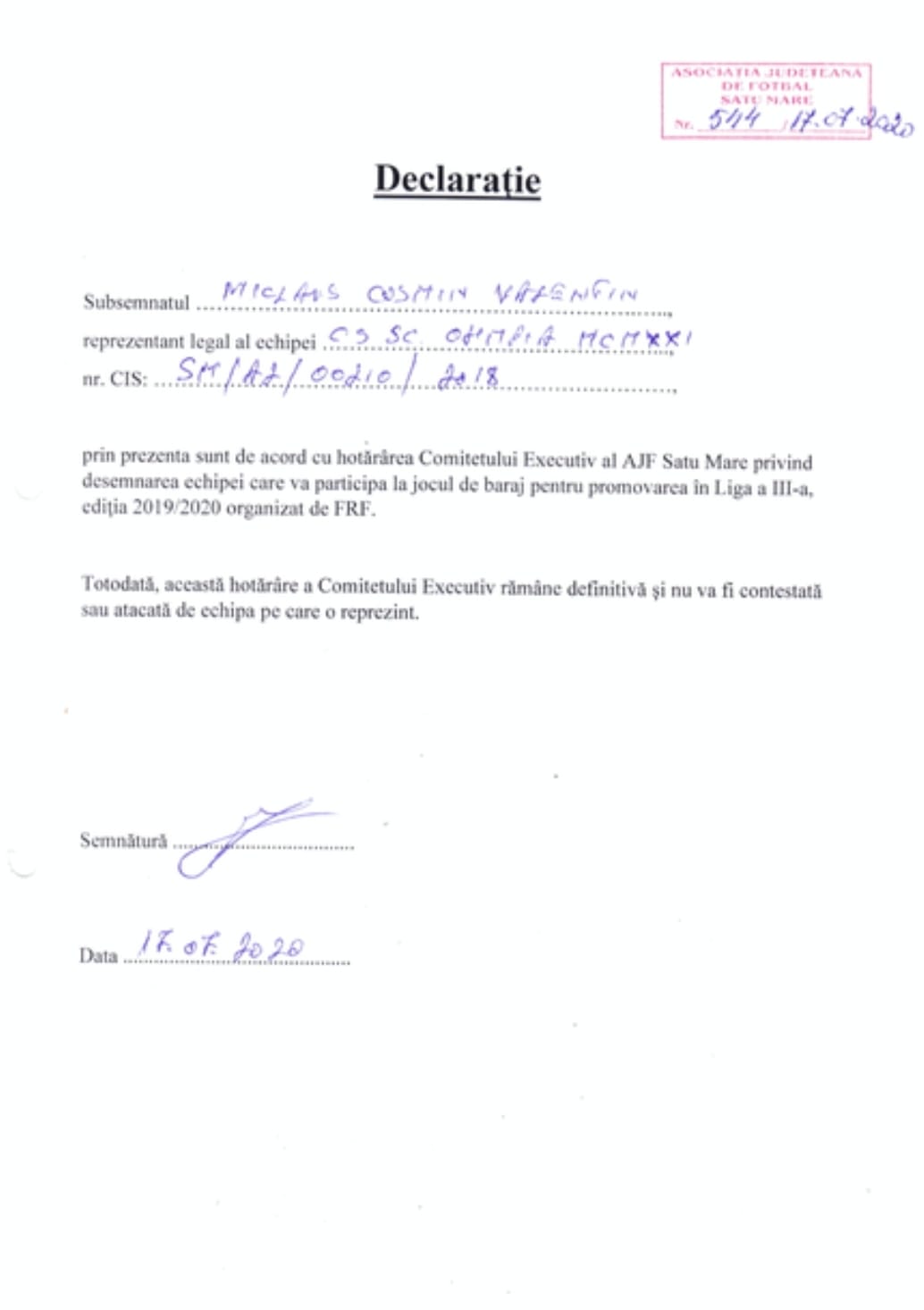 Având în vedere articolul apărut în Gazeta Sporturilor legat de mini turneul organizat între echipa noastră și CSM Satu Mare, respectiv Recolta Dorolț, facem următoarea precizare: clubul nostru a depus la AJF împuternicirea de desemnare a reprezentanților județului în barajul pentru promovarea în Liga a 3-a înainte de a se disputa orice meci. Din punctul…