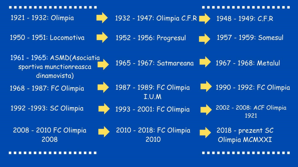 Fiecare perioadă a venit cu specificul ei, numele clubului schimbându-se ofical de multe ori după cum puteți vedea.