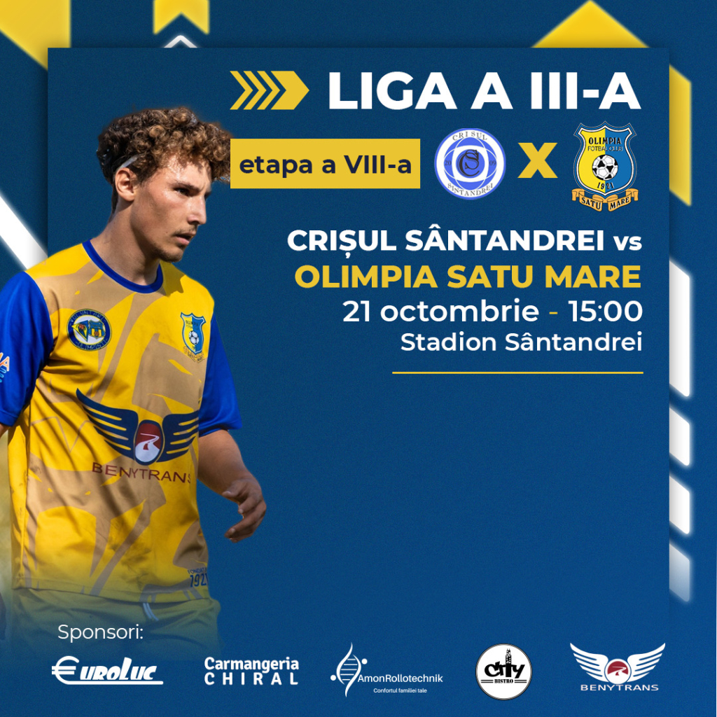 Cu moralul ridicat după victoria din etapa trecută, împotriva liderului seriei, sâmbătă, ne deplasăm la Sântandrei pentru a aduce în Satu Mare cele trei puncte puse în joc.