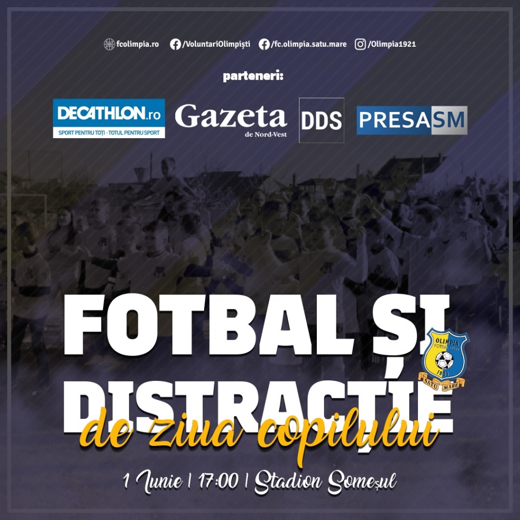 De 1 Iunie, așteptăm toți copiii la stadionul Someșul, cu începere de la ora 17:00, să ne jucăm fotbal și să ne distrăm în aer liber.