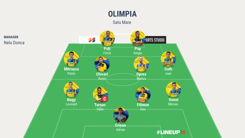 Nelu Donca, antrenorul Olimpiei MCMXXI, a început acest meci în următoarea formulă de joc: Adrian Crișan – Nagy Leonard, Călin Turșuc (cpt.), Gheorghe Filimon, Răzvan Vonet – Patrick Mitrașca, Denis Chivari, Marius Oprea, Ioan Cuth – Florin Puți, Sergiu Pop-Silaghi