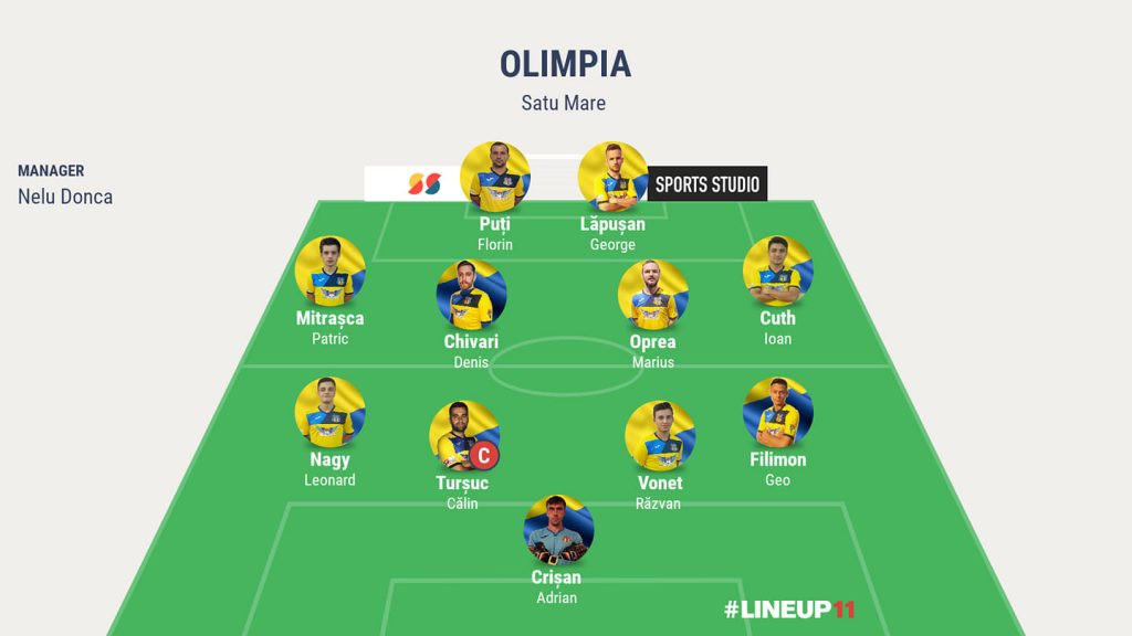 Olimpia a început meciul aliniind următorul unsprezece: Crisan – Nagy, Tursuc, Vonet, Filimon – Mitrasca, Chivari, Oprea, Cuth – Puti, Lapusan