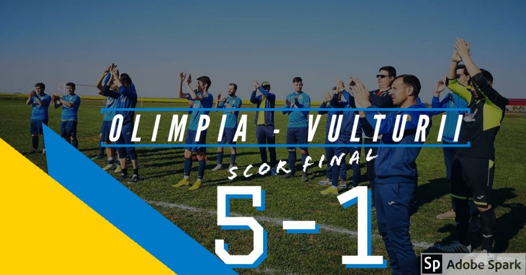 Astfel, Olimpia MCMXXI – Vulturii Santau s-a încheiat cu scorul de 5-1, galben-albaștrii mai adăugând încă trei puncte în clasamentul seriei A a ligii a V-a, ajungând la 39 de puncte din tot atâtea posibile.