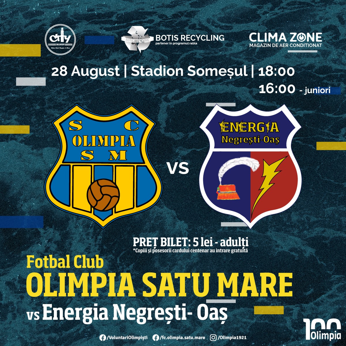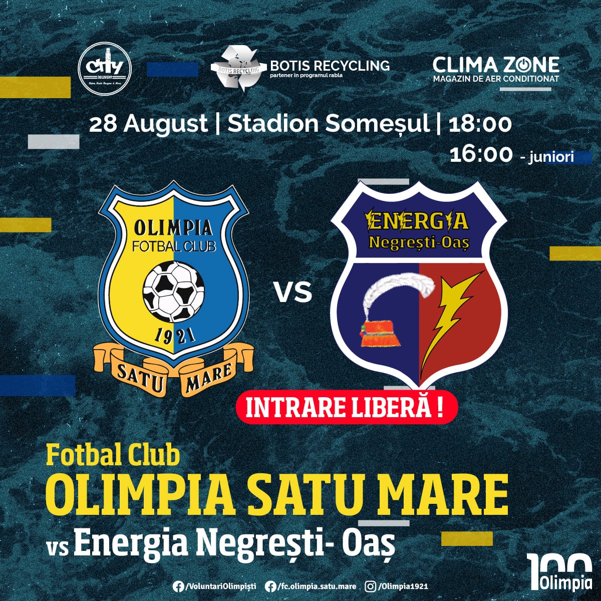 Azi, 28 august 2021, Olimpia Satu Mare a întâlnit pe stadionul Someșul din Satu Mare, pe Energia Negrești Oaș într-un meci ce a contat pentru etapa I a...