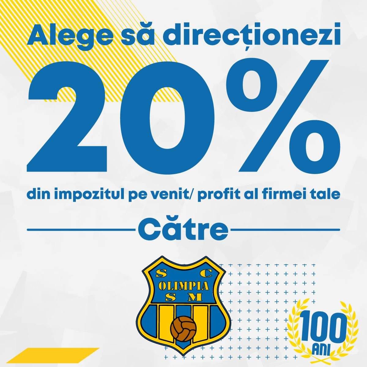 Alege să directionezi 20% din impozitul firmei tale către SC Olimpia Satu Mare