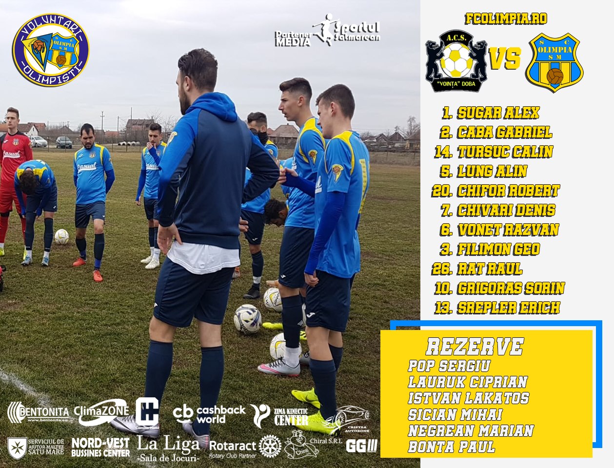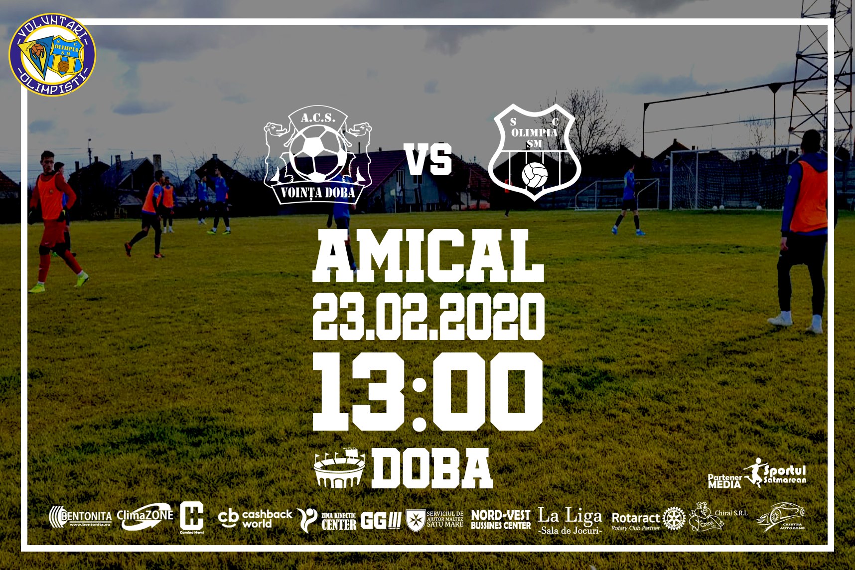 Olimpia Satu Mare întâlnește duminică 23 februarie într-un meci de pregătire, echipa din Doba, Voința, ocupantă a locului 6 in Seria B (Zona Someș). Meciul se va disputa...