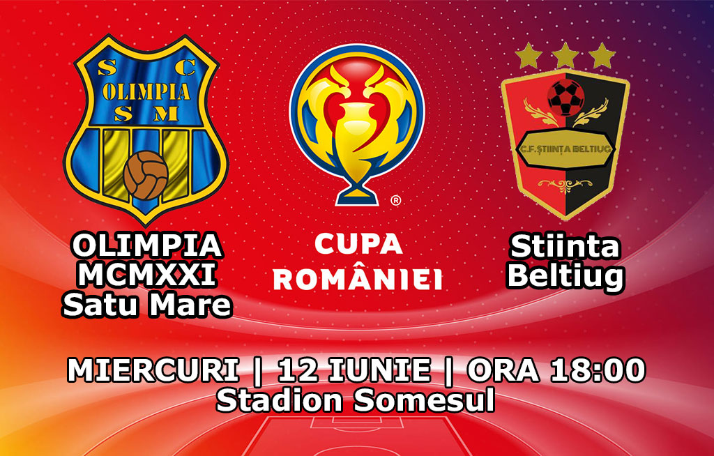 Azi, 12 iunie 2019, cu începere de la ora 18, pe stadionul Someșul, Olimpia MCMXXI Satu Mare întâlnește pe Știința Beltiug in sferturile Cupei României faza județeană....