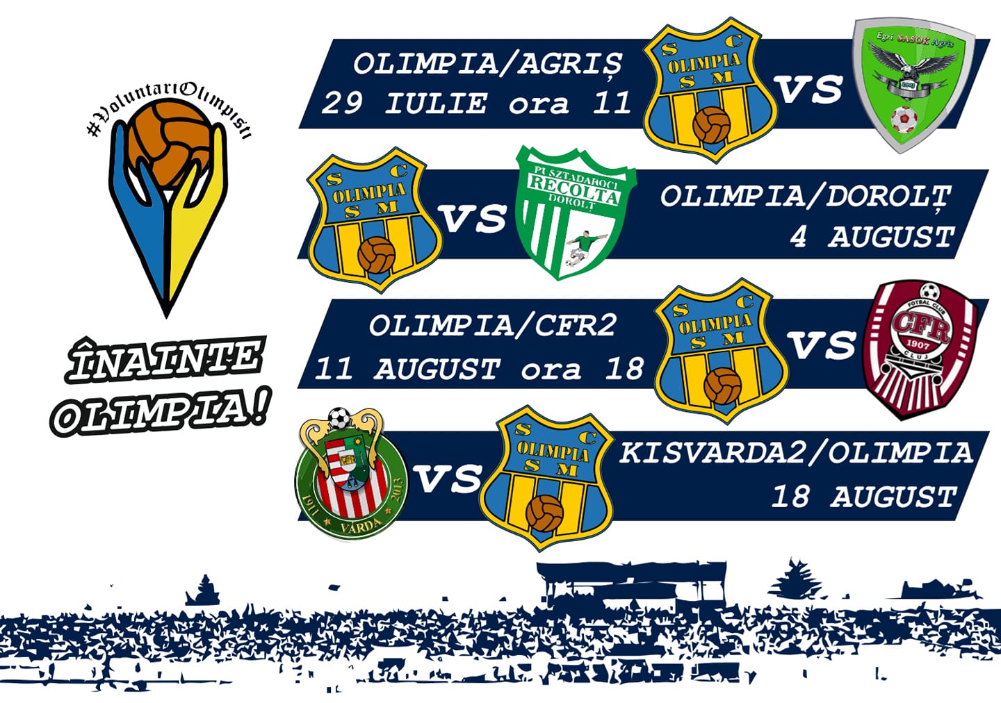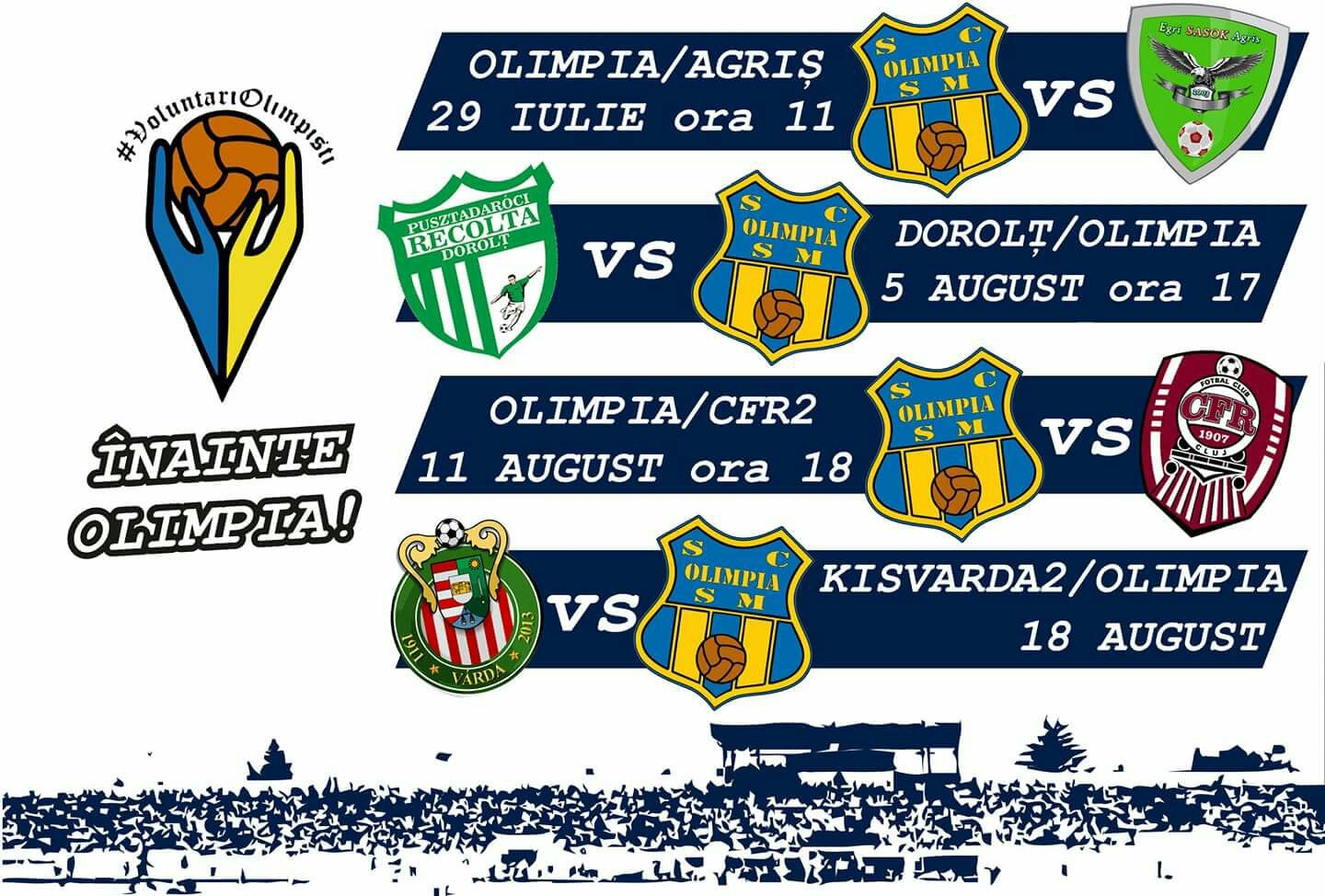 Olimpia MCMXXI incepe duminica, 29 iulie 2018, amicalele de pregatire pentru sezonul 2018-2019. Astfel, duminica, cu incepere de la ora 11:00 pe stadionul Somesul va intalni echipa Egri...