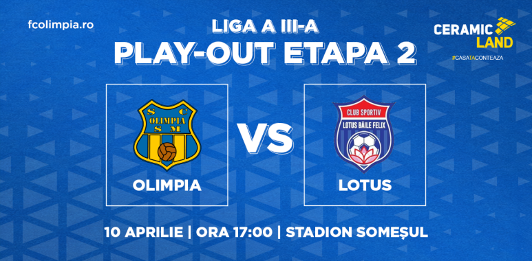 Cea de-a doua etapǎ a play-out-ului aduce la Satu Mare ocupanta locului trei, Lotus Bǎile Felix. Meciul va avea loc vineri, 10 aprilie 2026, cu începere de la ora 17:00 pe stadionul Someșul.