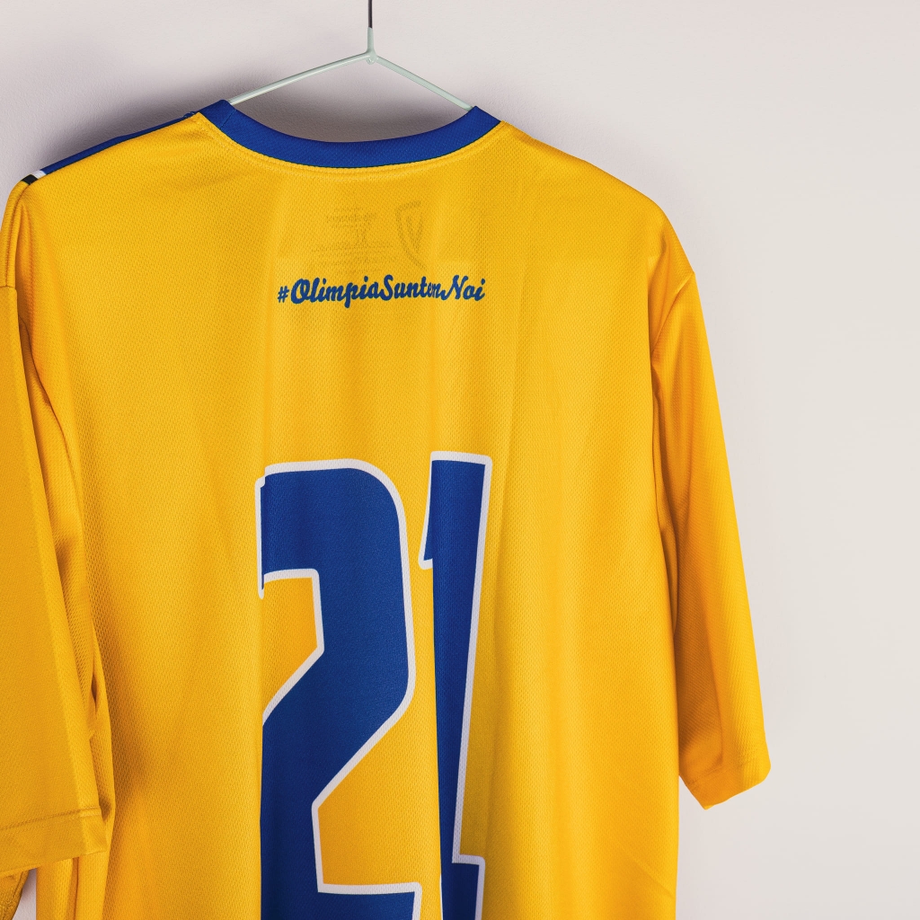 Știm că le așteptați de multă vreme și acum iată că au sosit. Tricourile de joc sunt fabricate din același material și respectă linia de design a celor purtate în acest sezon de #GalbenAlbaștri. Așa cum e tradiția, toate tricourile dedicate suporterilor au pe spate numărul 21, unul din cele mai importante simboluri ale Olimpiei.