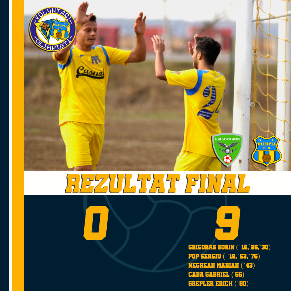 Astfel, Egri Sasok Agriș – Olimpia Satu Mare s-a încheiat cu scorul de 0-9, acesta fiind ultimul meci de pregătire pentru galben-albaștrii.